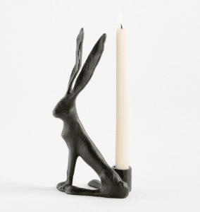 If you like subtle hints for seasonal decor, these iron rabbit candle holders soften a space and make easter decor present without being in your face.