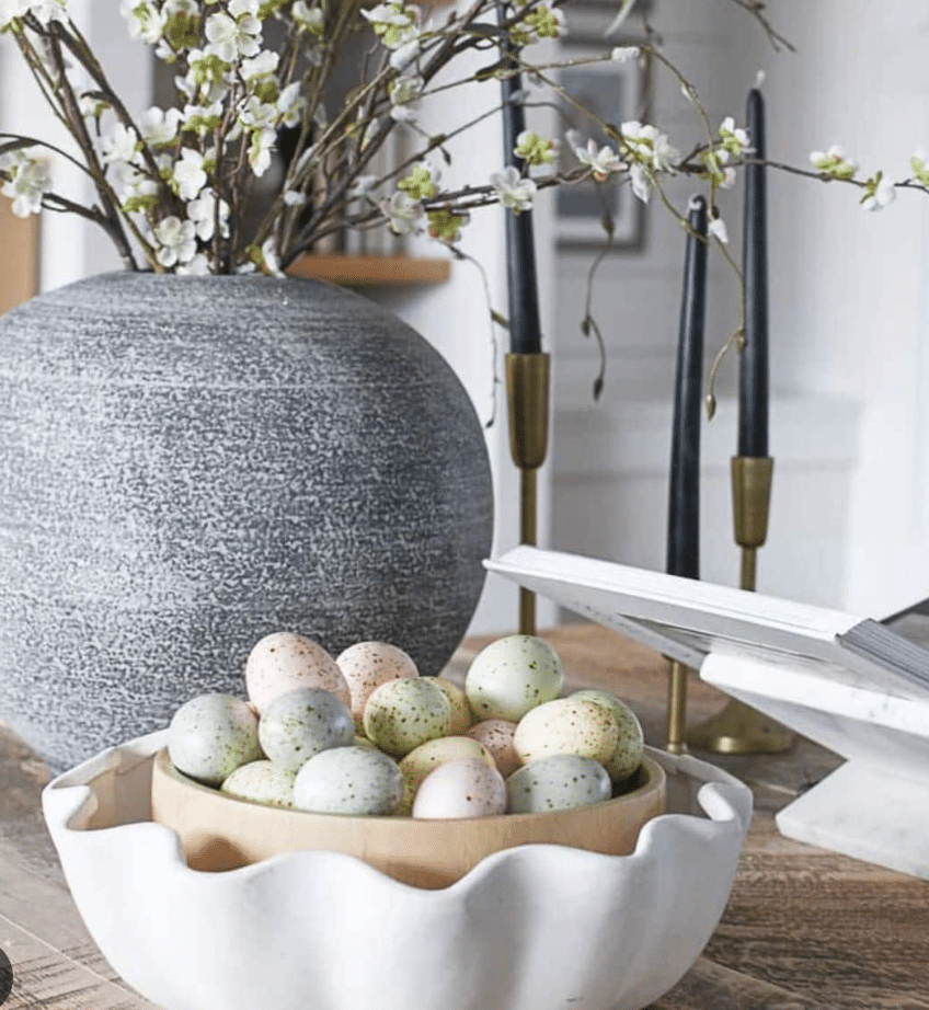 Easter decorating doesn’t have to mean pulling out bins of themed décor or committing to bright colors everywhere. Small, thoughtful touches go a long way. Think layers, neutral tones, and pieces that blend seamlessly into your everyday home.